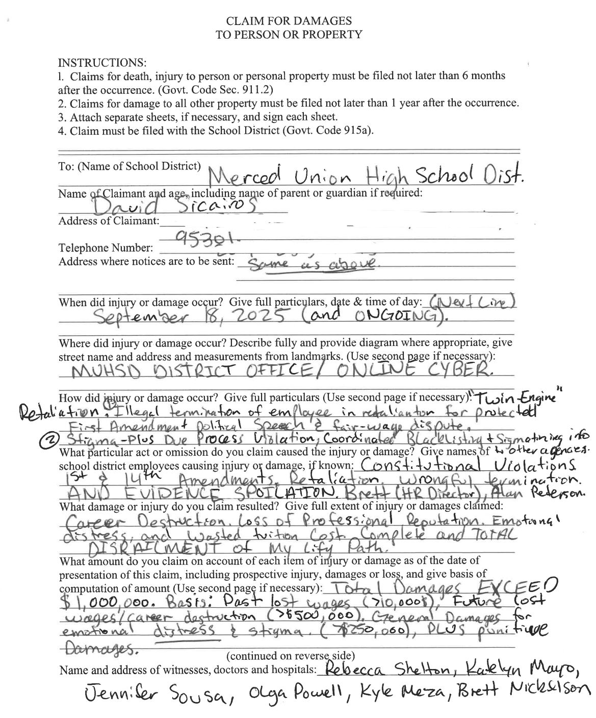 As of Tuesday afternoon, the Merced Union High School District (MUHSD) posted my UNREDACTED home address and personal cell phone number on the public Board Agenda for tonight’s meeting.
